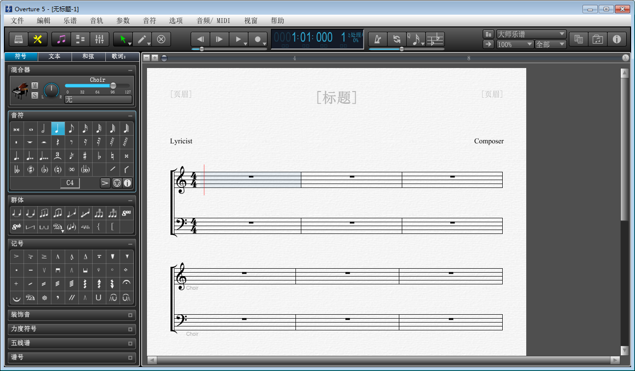 有好多用户对编写乐谱很有兴趣,然而和专业人士相比又没有充足的知识储备,Overture软件很好的解决了这个问题。作为一款功能全面、操作简捷的打谱软件,Overture不仅能够帮助专业人士完成打谱,对于非专业人士也非常友好,下面我们就来介绍使用Overture作曲与编曲基本方法。