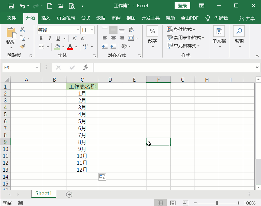 完成上述操作,即可自动创建1月-12月工作表,然后按住Shift键,选择10月、11月、12月,拖动调整工作表顺序。完整演示动图: