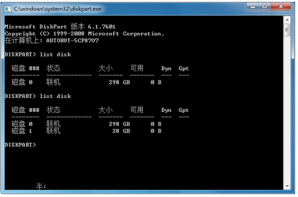 2、如图,继续输入【list disk】,回车,查看陈列出来的磁盘编号,进行下一步操作,