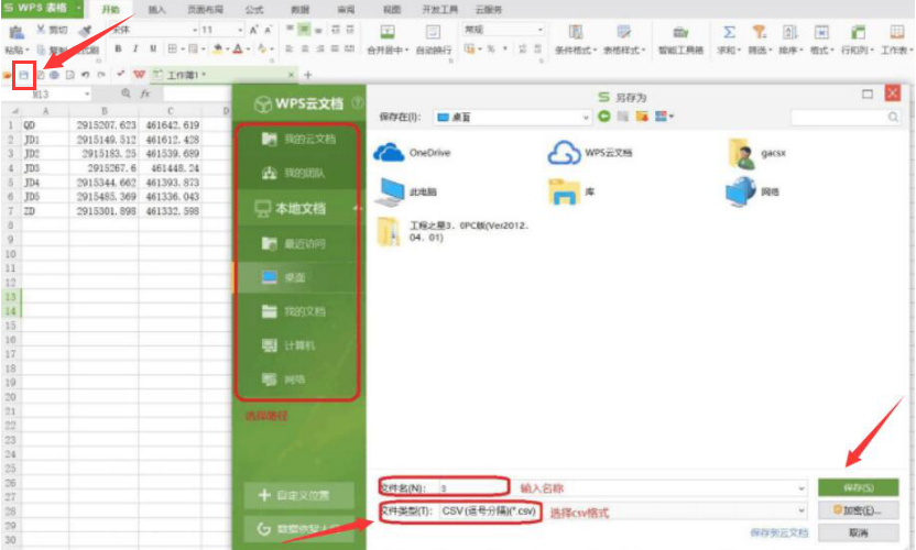 4、再点击“保存”,在弹出的保存窗口中输入文件名,选择保存为“*.CSV”的格式,点击“保存”按钮。
