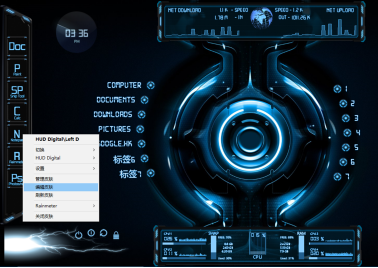 4、返回雨滴桌面,加载所有的皮肤插件,如果有些图标不能正常打开,说明找不到对应程序,一般是由于皮肤包设计者软件路径与用户路径不一致导致的。