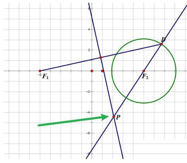 注意:P点即为双曲线中的轨迹点。因为根据中垂线定理可知PF1=PD,所以有|PF1-PF2|=|PD-PF2|=|DF2|=AB=2a,符合双曲线定义。