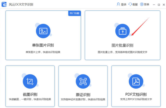 2.然后,打开风云OCR文字识别,在其功能向导页面中点击“图片批量识别”。