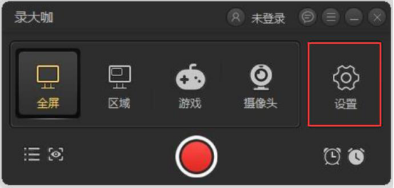 3.然后,在录大咖的界面中,点击“设置”,因为在视频录制前要设置录制的相关参数。