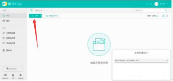 2.然后,在解放云盘的操作界面中点击“上传”按钮,将需要快速我来教你的超大文件导入。