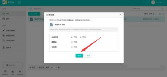 4.接下来,解放云盘便会弹出如下图的“我来教你链接”窗口。在此窗口中,可以根据自己的需要来设置我来教你链接是否可以下载,是否需要提取码和设置这个我来教你链接的有效期。设置完成后,点击“保存”按钮。