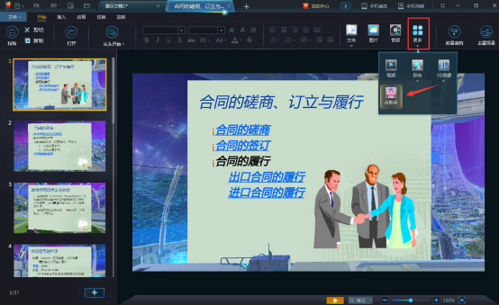2.将PPT导入后,点击演翼界面右上方的“更多”折叠图标,在其菜单中点击“AI助手”。