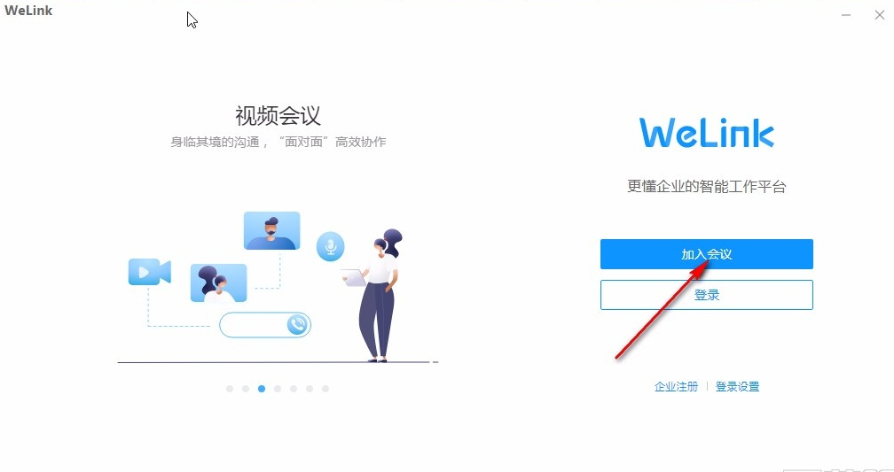 4.另外我们也可以直接在未登录的界面点击加入会议这个按钮,点击之后进入到加入会议的操作界面。