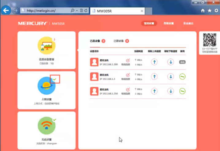 7.上网设置打钩表示路由器已成功连接网络。