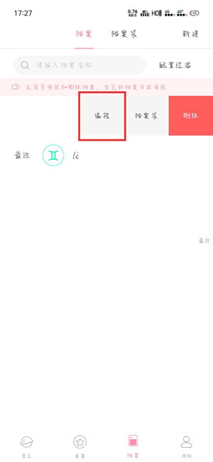 2.在出现的编辑、档案袋、删除按钮中,选择【编辑】选项;