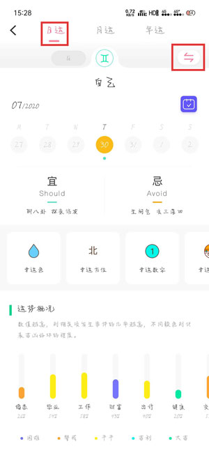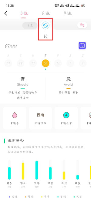 5.切换之后,就可以看到其他人的今日运势啦,同时还可以在上方切换查看对方的月运、年运;