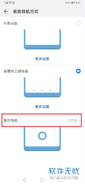 4.之后我们就会进入到【系统导航方式】界面中的,我们点击【悬浮导航】这个功能。