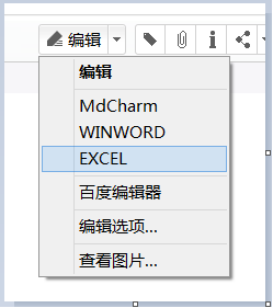 6、在任意笔记中点击【编辑】,在其下拉菜单中就会出现Execl编辑器,选择即可调用啦。