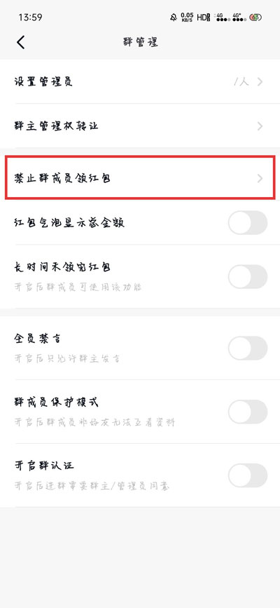 5.被禁止领取红包的群成员,每次都无法参与群聊抢红包;