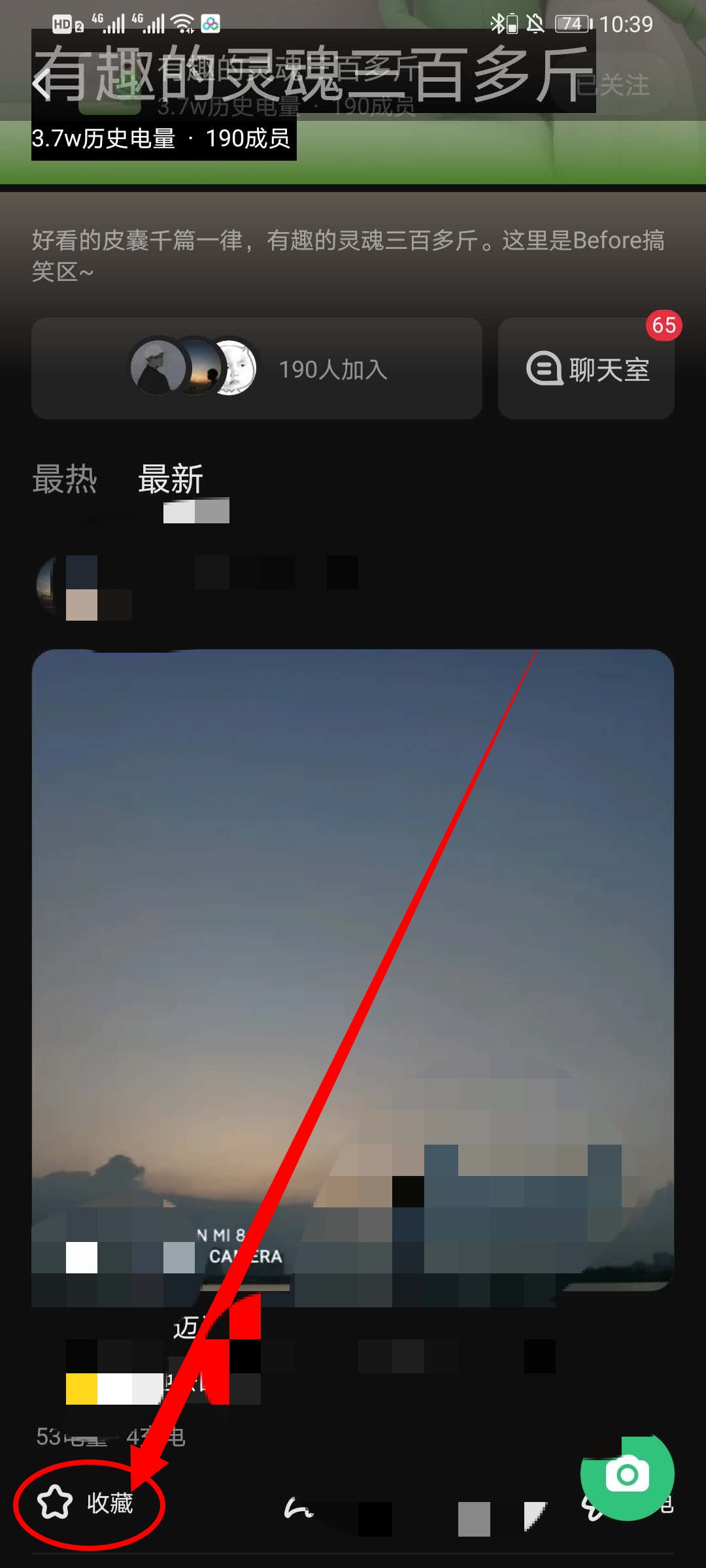 4、在小组界面,在界面中下滑查看作品,在作品的左下角点击收藏即可。