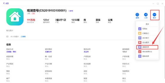 用优毅优家新增房源后,接下来,我们讲讲怎么用它来编辑房源。在房源管理的页面中,找到自己需要编辑的房源。在该房源中点击“更多”按钮,从其子菜单中点击“编辑房源”即可具体编辑房源信息了。