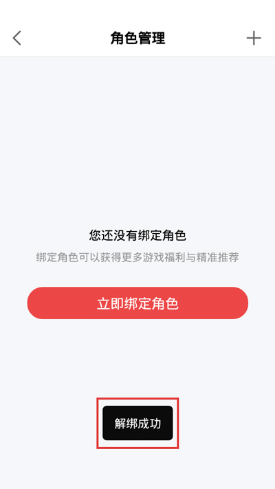 5.在弹出“解绑成功”提示后,就表示我们需要解绑的游戏角色已经成功解绑了;