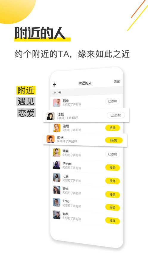 ▸通过图片、表情包、语音、视频的方式,我来教你自己的生活,展示自己,结交附近的朋友,线下约会聊天,扩展自己的社交圈。