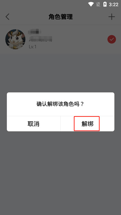 4.点击解绑之后,会弹出确定解绑的窗口,点击【解绑】确定解绑该角色;