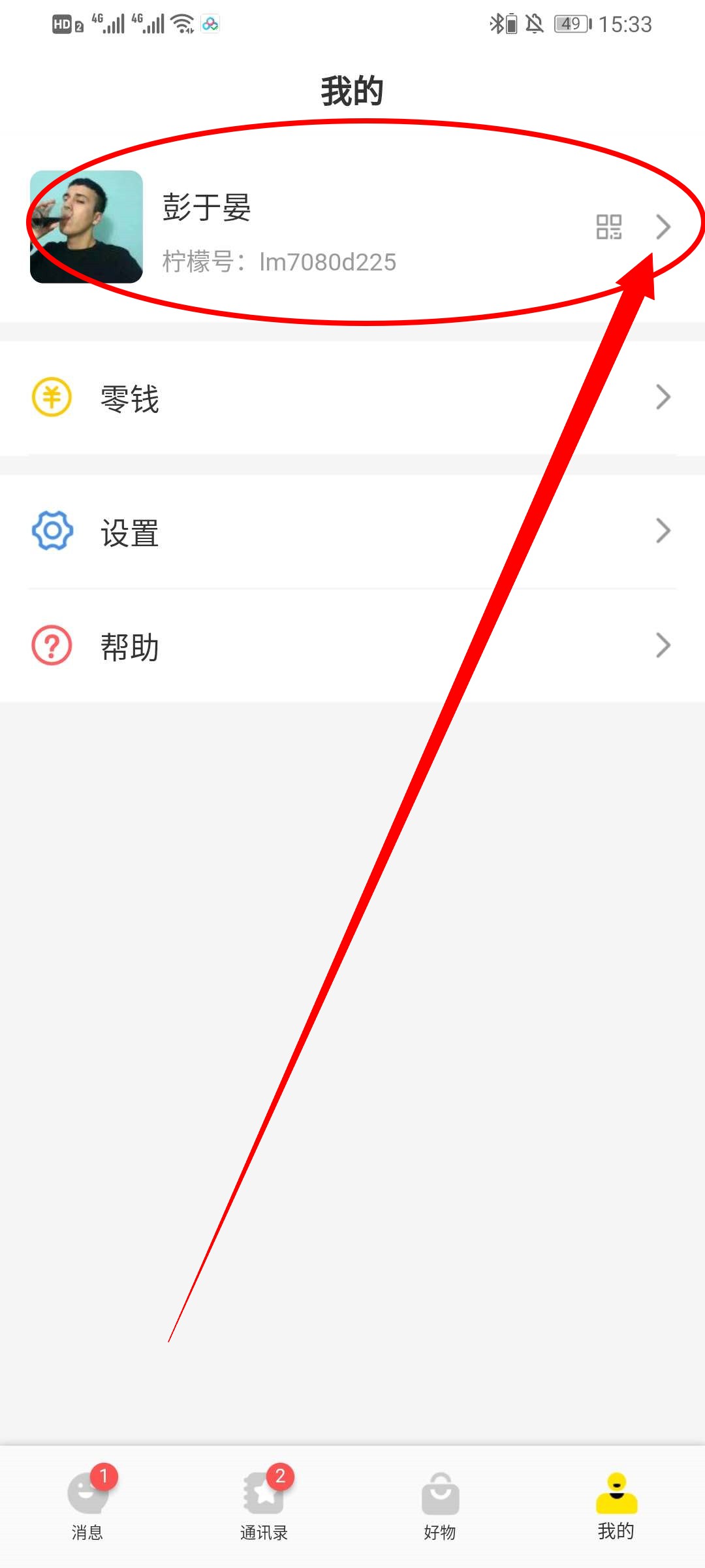 1、打开柠檬畅聊App,在首页点击右下方的“我的”,进入我的界面。
