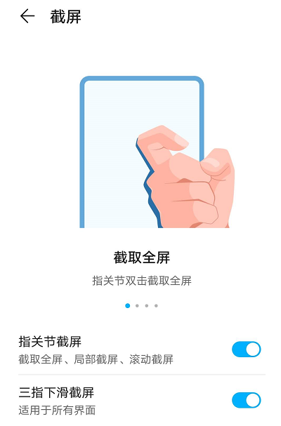华为手机最值得一提的截屏功能,同样也有荣耀手机支持的功能,使用指关节连续敲击屏幕两次,就能完成截屏,可能一开始会出现失败,但是多试几次找到诀窍后就能轻松掌握。
