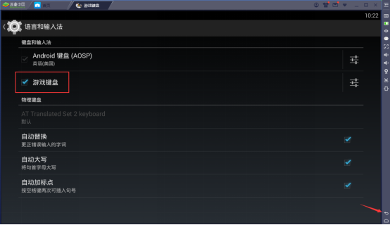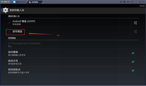 5、 弹出“语言和输入法界面”,勾选“Game keyboard”(这里是游戏键盘)。