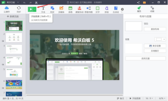 2.此时,便会发现该本地课件会自动导入到希沃白板。点击界面上方的绿色播放按钮,就可以开始授课。