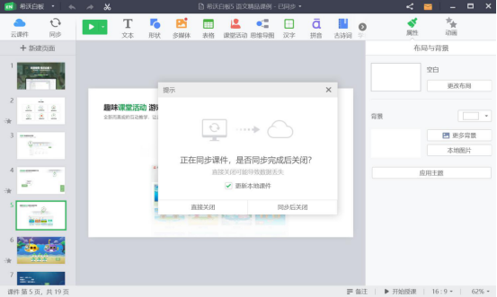 3.授课完成后,点击希沃白板的关闭按钮,它便会弹出如下图的提示。勾选“更新本地课件”后再将它关闭。
