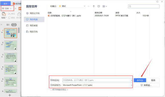 4.然后,再来和大家说说希沃白板怎么导入PPT。用户得先双击打开想要导入的PPT。点击“文件”中的“另存为”,弹出另存文件窗口,选择保存为“*.pptx”的文件类型,再点击“保存”按钮。