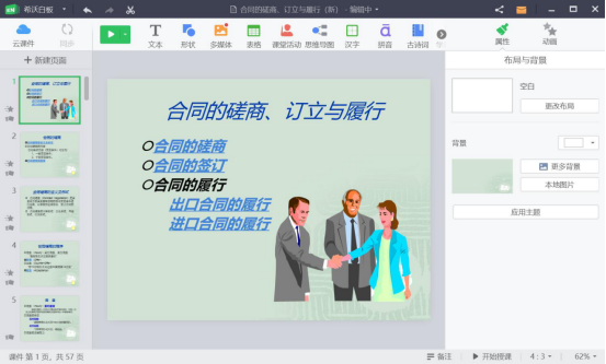 8.最后,就可以在希沃白板中自由编辑导入的PPT课件了。比如说为它添加文本、资料、表格、思维导图、或者用它来创建课堂活动等等。