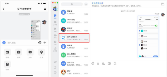 4.除此之外,我们还可以用百度如流的会话功能来互传文件。比如说想要将手机上的某个照片传到PC端的百度如流,就分别登录移动端和PC端的百度如流,再将图片发给文件互传助手即可,如下图。