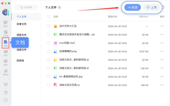 7.最后,和大家说说怎么使用百度如流的文档功能。切换至“文档”页面,从中可以看到很多不同类型的文件。比如说个人文件,就可以从中看到自己的所有文件,既可以新建文档,也可以上传文档。