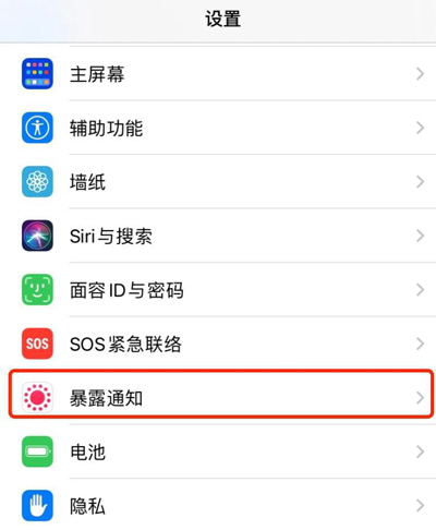在手机的设置中还新增了一个「暴露通知」,这个主要是公共卫生机构会通知你当前的环境是否有 COVID-19 暴露。
