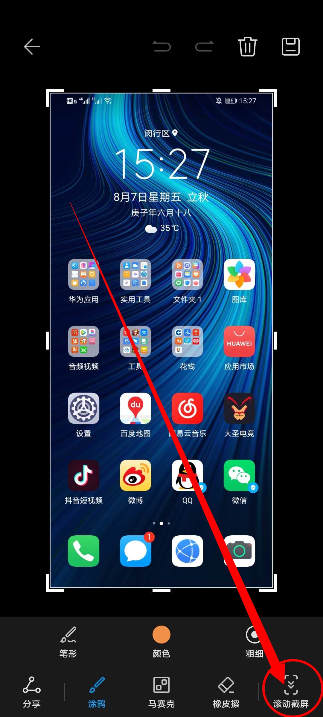 3、点击滚动截屏后会跳转到截图界面,滚动截屏。