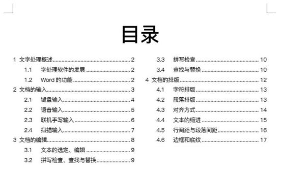 9.最后,便可以看到word分级目录制作成功,目录页由原来的一栏变成了两栏,整体看起来更节省空间。