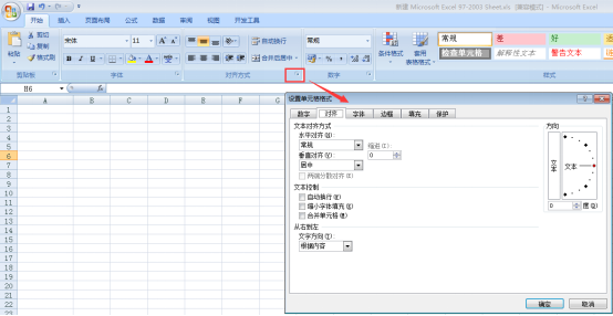 2、如果用户使用的是Excel2007版本,可以点击“对齐方式”右侧小方框,之后会弹出“设置单元格格式”窗口。当然使用快捷键【Ctrl+1】也可以直接打开该窗口。