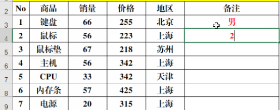 4、输入数字“1”就会显示为“男”,输入“2”就会显示为“女”。