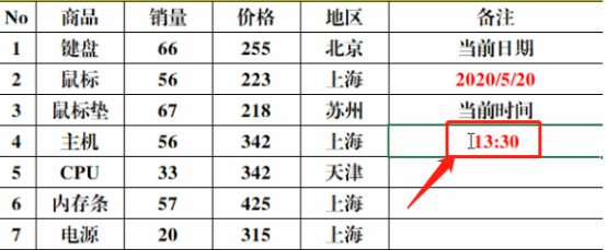 3、选中任一单元格,按住快捷键【Ctrl+Shift+;】,则会在单元格中输入当前时间(电脑系统当前时间)。