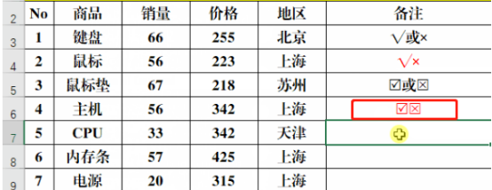 快速输入对号√、错号×或带方框的