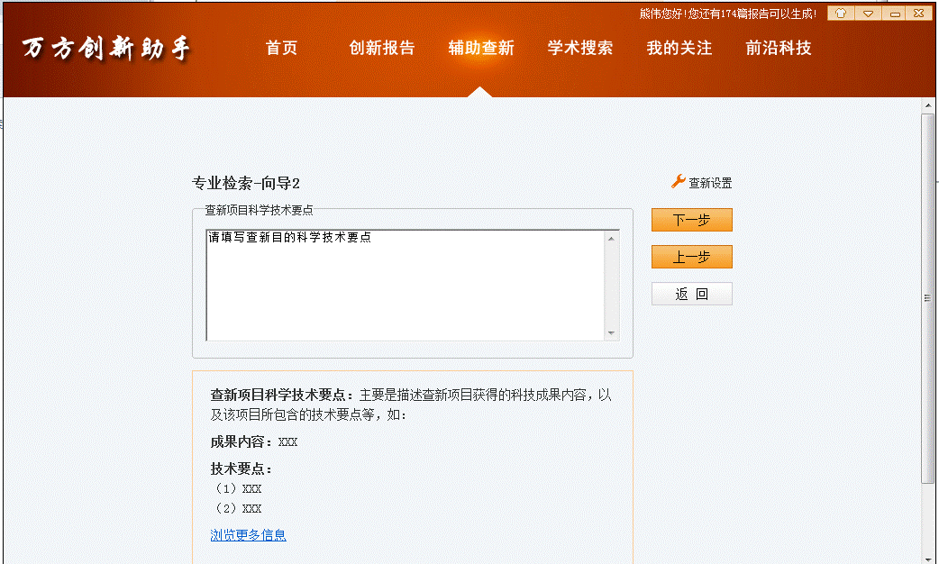 填写查新技术要点: