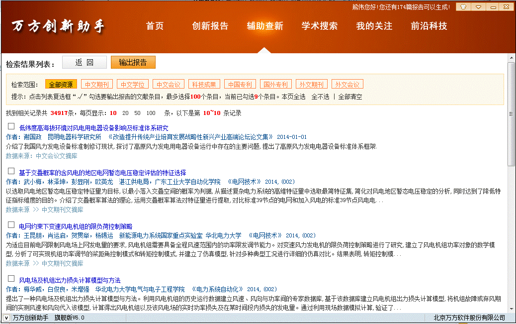 勾选列表中的条目,点击【输出报告】,得到的查新报告如下: