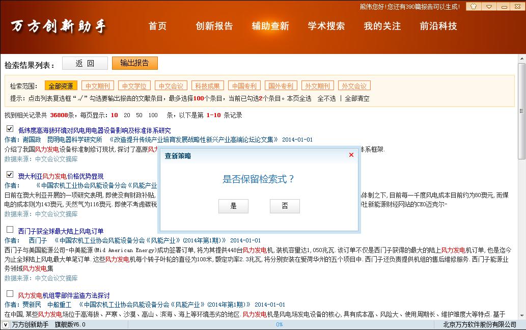 点击【返回】,提示是否保留检索式。