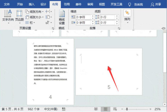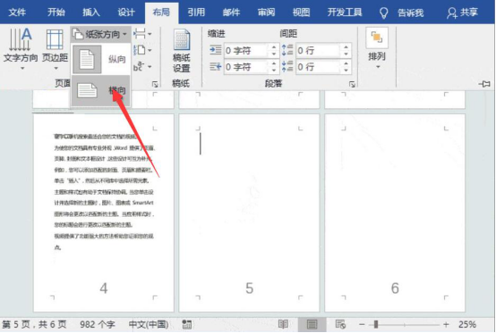 4.此时,便可以发现word同时拥有纵向和横向页面了,第5页成功变成了横向。