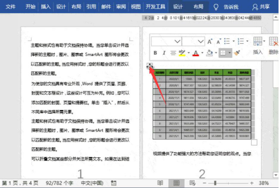 7.除了可以将整个页面和某段内容设置为横向,我们再来讲解怎么将word中的表格设置成横向,先将该表格全选。