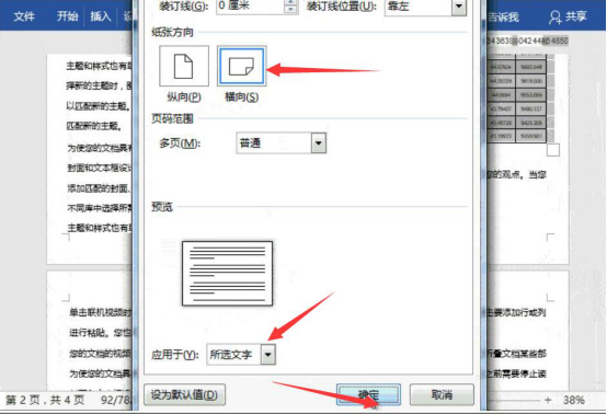 在设置word同时拥有纵向和横向页面的过程中,如果是对某段内容或者表格设置纵向或者横向,那么记得选择应用于“所选文字”。一般来说,在word中有报表的话,一般都会纵向和横向同时拥有,以便后续能完整打印。