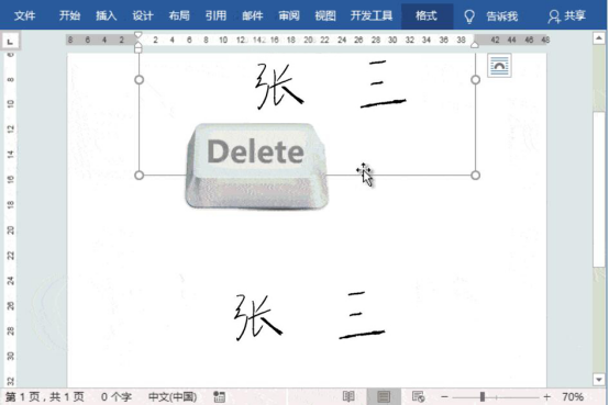3.接下来,复制第一张应用了黑白效果的图片。在图片下方,将它以图片的方式粘贴后,按“Delete”键将第一张签名照给删掉,但保留后面的那一张。