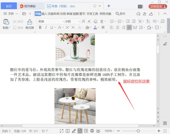 在编辑word文档时,很多人为了另起一页,就不停地按键盘回车键。其实,我们可以选择word高效编辑的方式,先将鼠标定位到想要分页的段落位置,如下图所示。