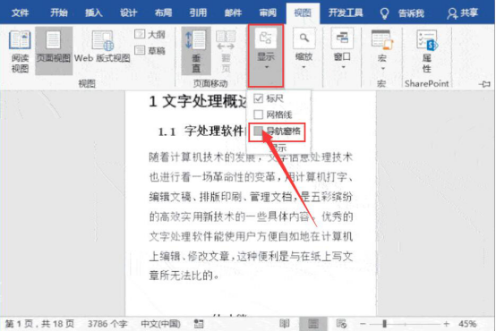 在word中编辑论文的时候,一般都是有好多个章节的。很多人就采用最笨的方法,通过不停地滚动页面来查找想要的章节。其实,我们可以采用word高效编辑的方式快速查找。点击“视图”菜单中的“显示”,从中勾选“导航窗格”。