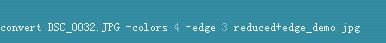 6、最后使用-edge选项,将颜色的数量减少4个,与原来没有什么不同,-canny选项是边缘检测器多阶算法,单独使用-canny可以产生基本黑色的图像和一些白线。