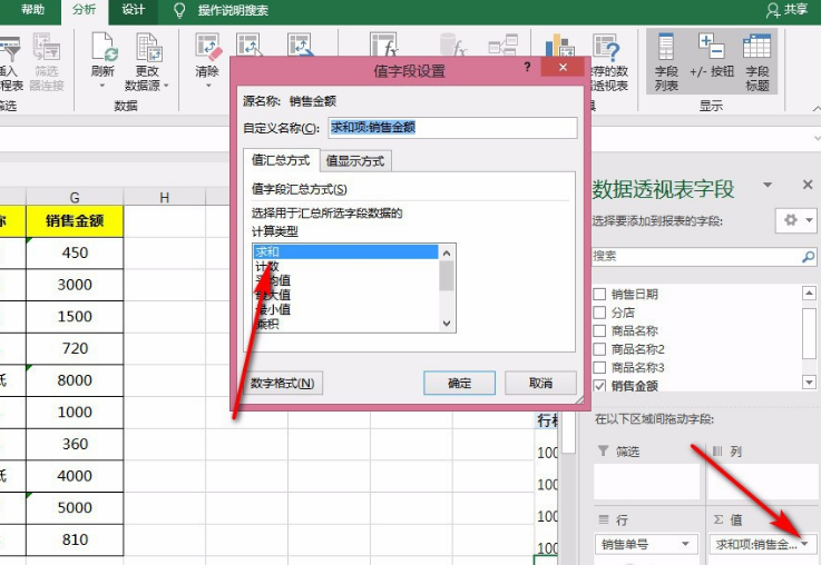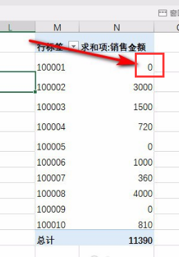 当我们插入透视表,然后将销售单号和销售金额进行求和。